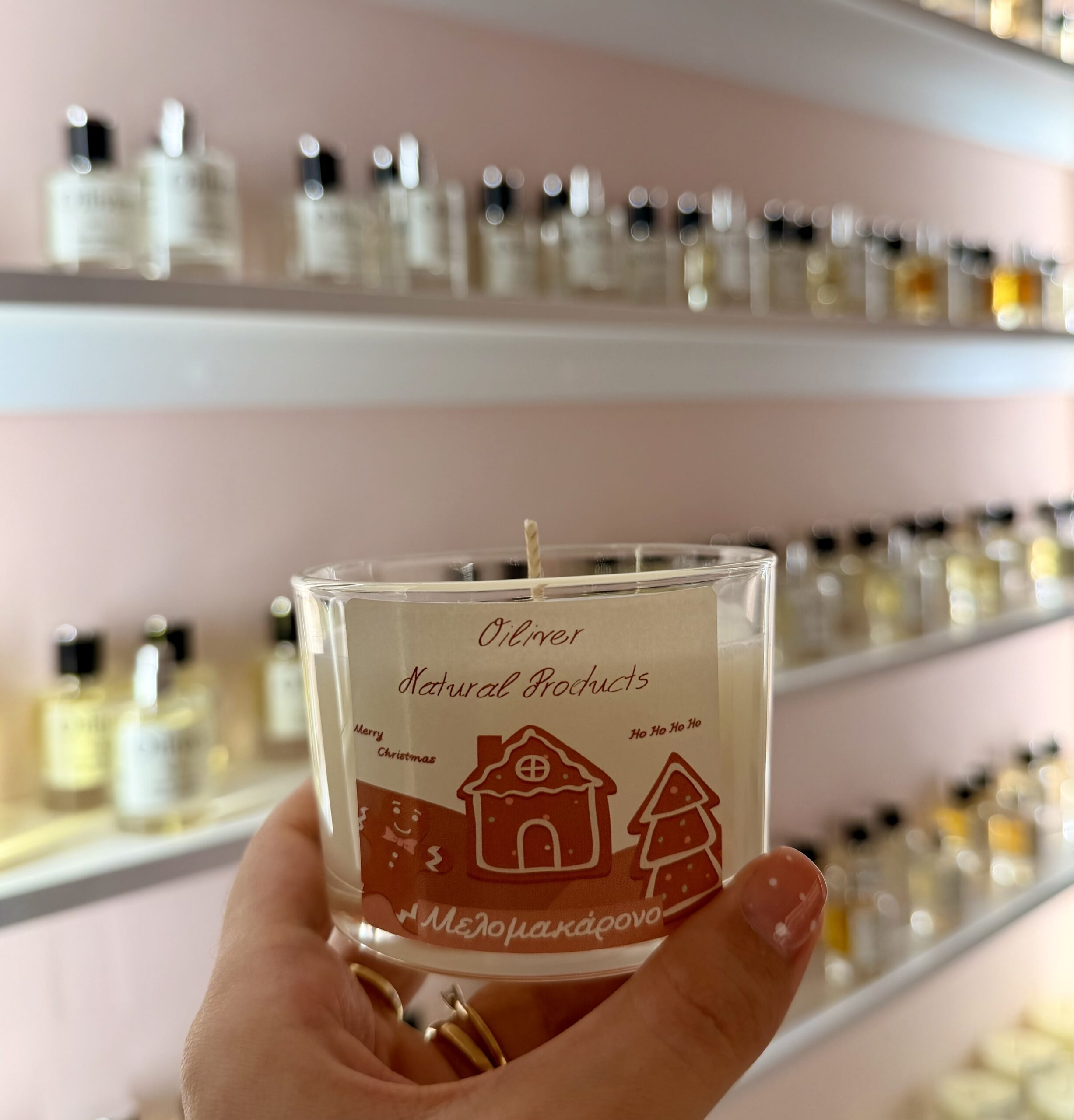 Το κεράκι με μυρωδιά Κουραμπιέ & Μελομακάρονο είναι σαν να άνοιξες κουτί με φρεσκοψημένους κουραμπιέδες που μόλις πασπαλίστηκαν με άχνη ζάχαρη. 🤍